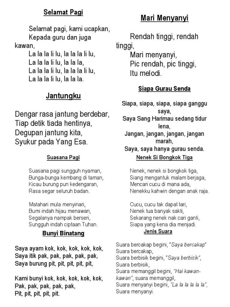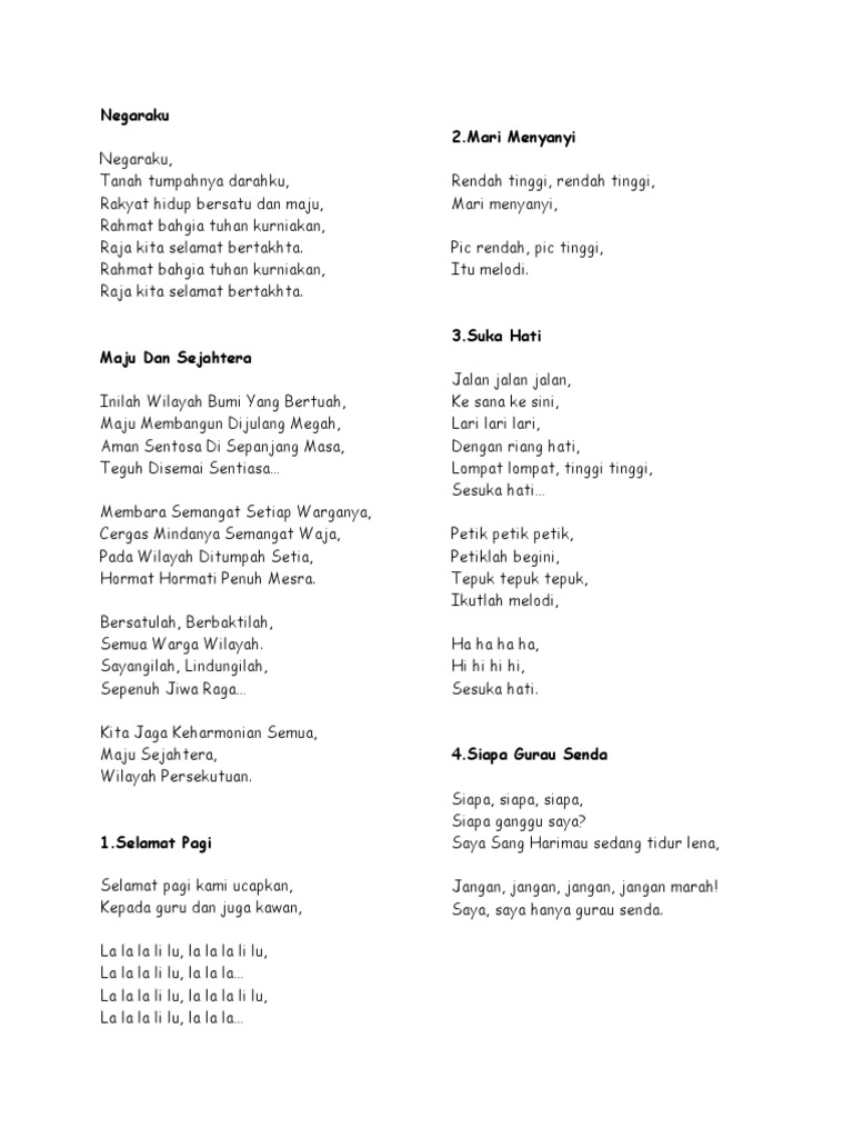 Lirik Lagu Rohani Anak-Anak Mari Nyanyi. Lirik lagu2 KSSR tahun 3. Mari kemari mari menari Kita bikin gaya sendiri Sesuka hati Ooh yaa.